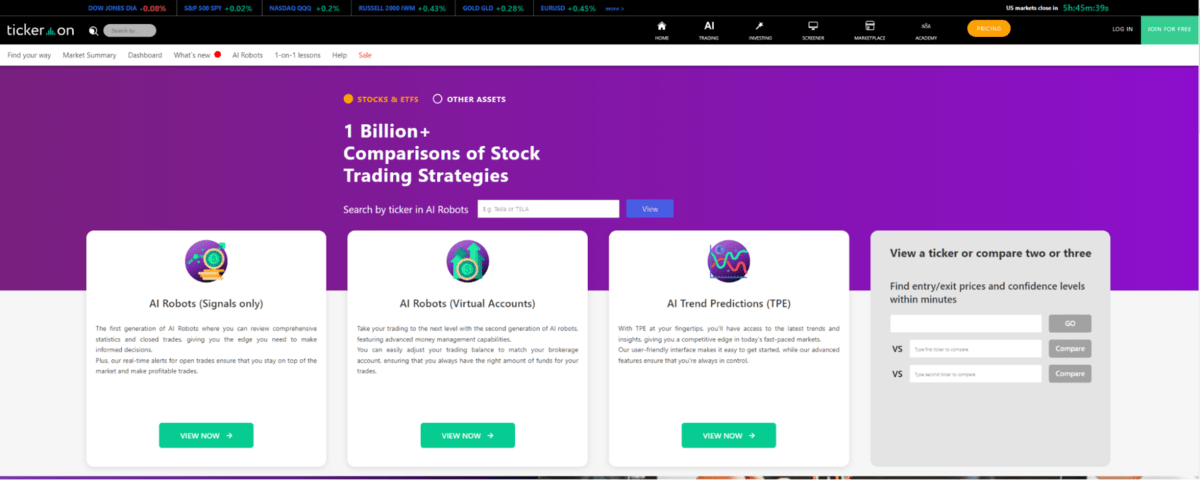Tickeron offers more than just AI trading software; it’s a comprehensive platform filled with information on potential trades, expert advice, and more. The goal is to provide investors with actionable insights.