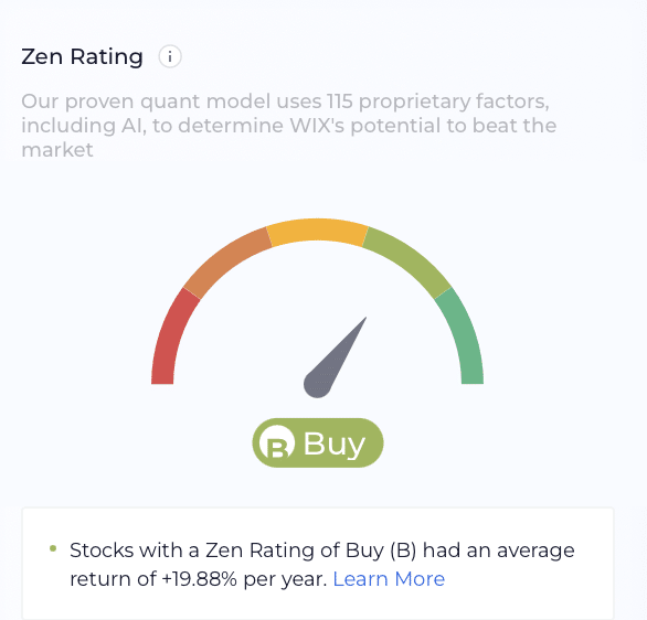 As a B rated stock, WIX is in the 20% of stocks based on the Zen Ratings system, which have generated an average return of 19.88% returns per year. Here’s where it gets even better: A-rated stocks using the Zen Ratings system have generated an average annual return of 32.52% since 2003. At any time, hundreds of stocks have an A or B rating, giving you plenty of high-potential stocks to choose from.
