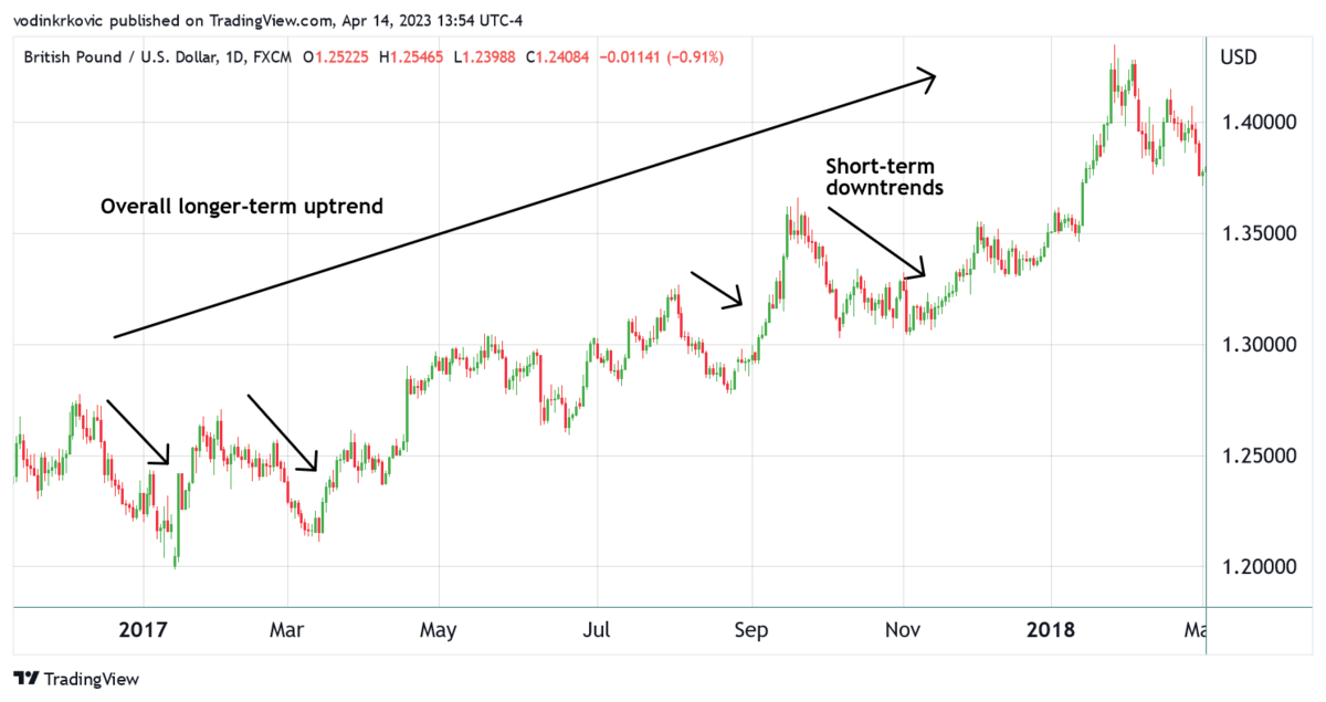Once you’ve established what the longer-term trend is, you can look at the daily or weekly chart as a part of that larger trend.