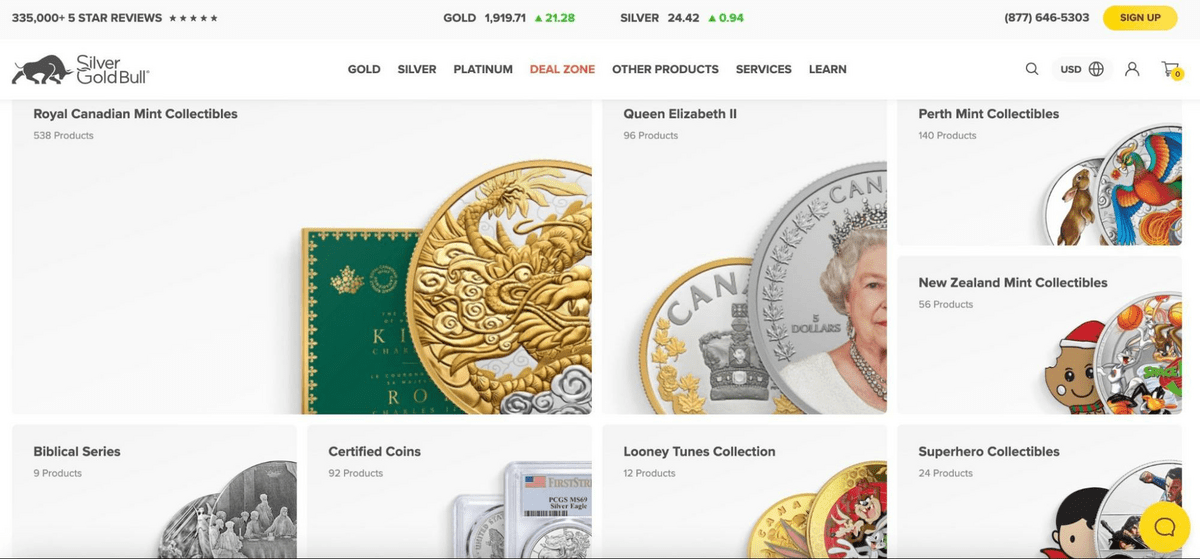 If you’re serious about stacking gold, you could get started with an online vendor like Silver Gold Bull. Besides gold and silver bars, this site offers plenty of unique options like palladium, jewelry, and even a few pop culture-inspired coins.